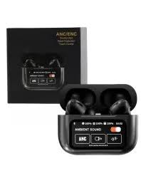 The A9 Pro TWS Wireless Earbuds combine modern design with advanced smart features. The interactive LCD touchscreen charging case allows you to manage music, adjust volume, and control settings directly from the display without using your phone.